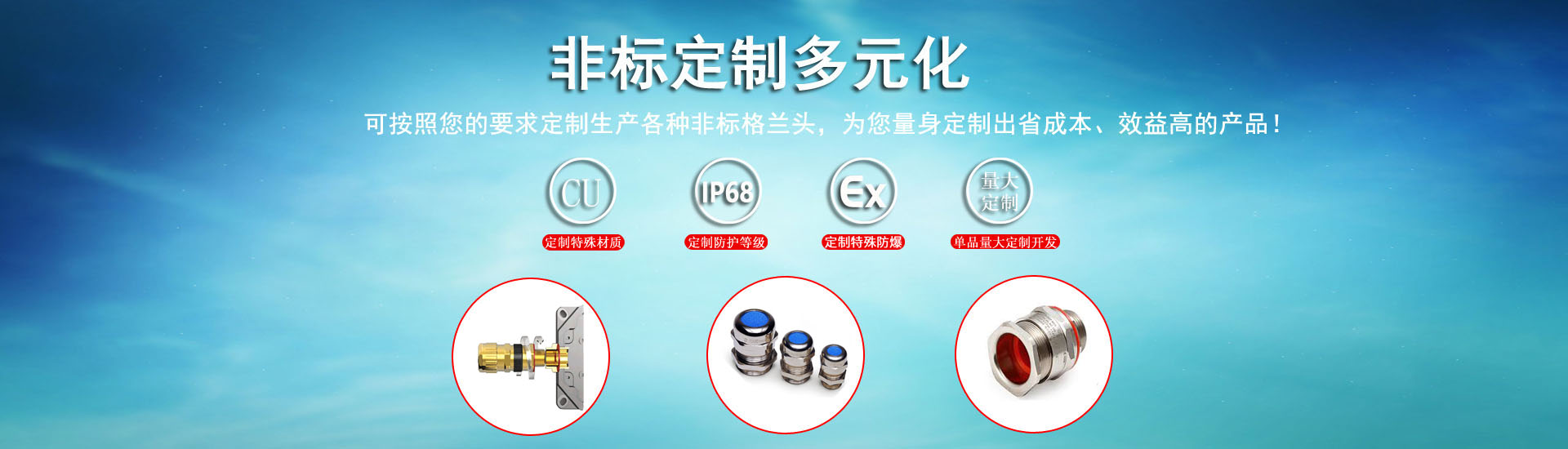 主營產(chǎn)品:不銹鋼(304,316,316L)電纜接頭/格蘭頭,不銹鋼鎧裝電纜格蘭頭,電纜固定頭,不銹鋼電纜接頭,不銹鋼鎧裝防爆接頭,銅接頭,銅質(zhì)電纜接頭,金屬電纜接頭,